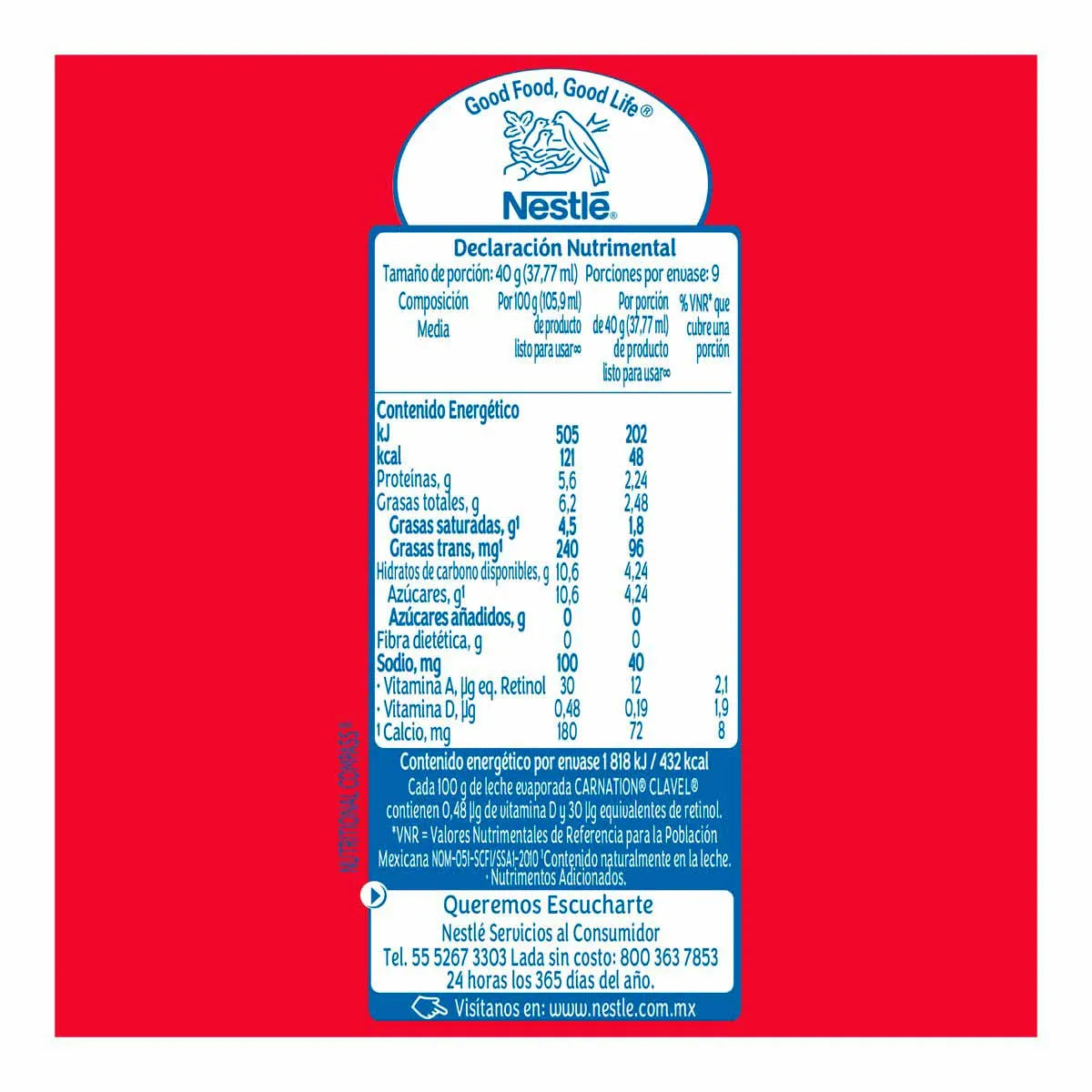 Leche Evaporada Nestlé Carnation Clavel Original Lata 360g