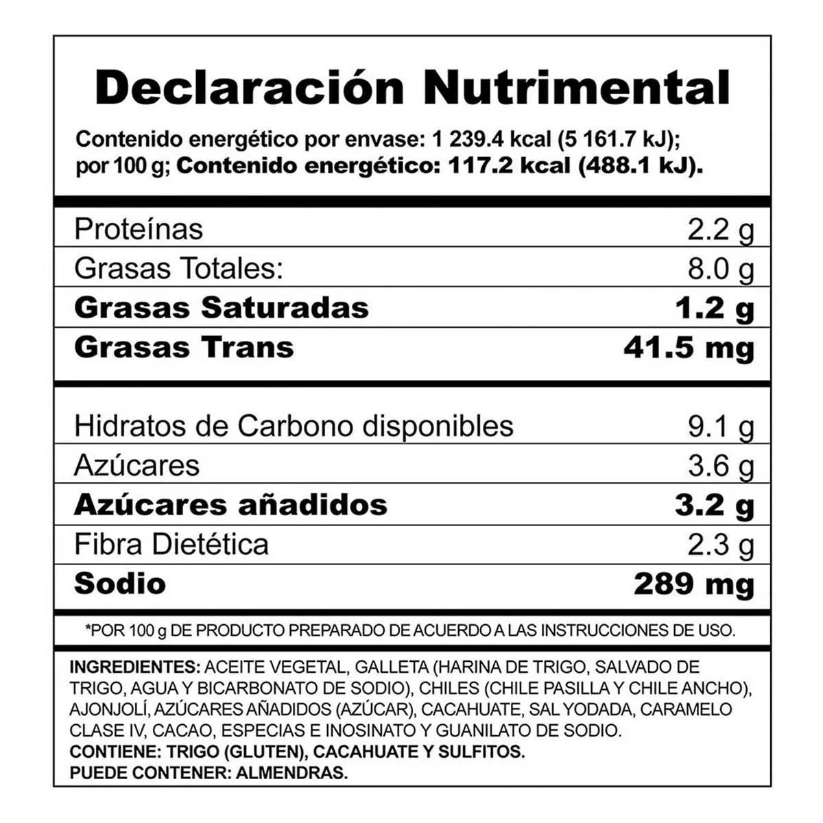 Mole Doña María Rojo en Pasta 235g. Con más de 70 años de historia, su receta original combina chiles, ajonjolí y cacahuate para un sabor tradicional y suave, ideal para pollo, enchiladas o antojitos. Es fácil de preparar: solo disuélvelo con caldo y en minutos disfrutas de la esencia del mole mexicano en tu mesa.